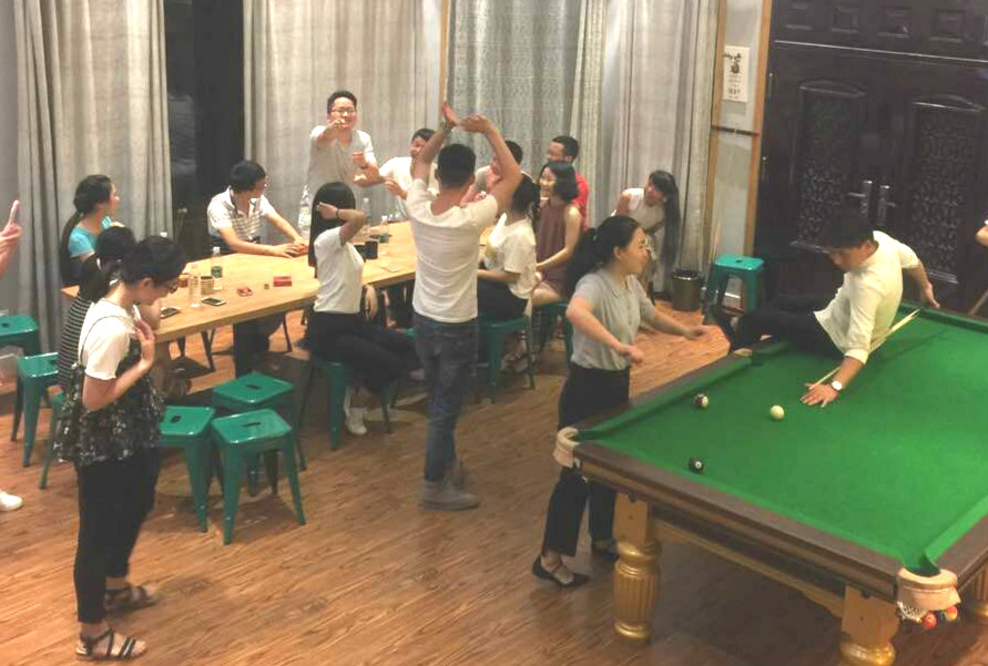大家酒足飯飽,但都意猶未盡,分組玩起了各種游戲,游戲節(jié)目讓大家神采飛揚,笑的前翻后仰。
