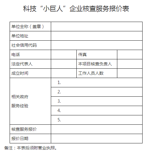 附件:科技“小巨人”企業(yè)核查服務(wù)報(bào)價(jià)表